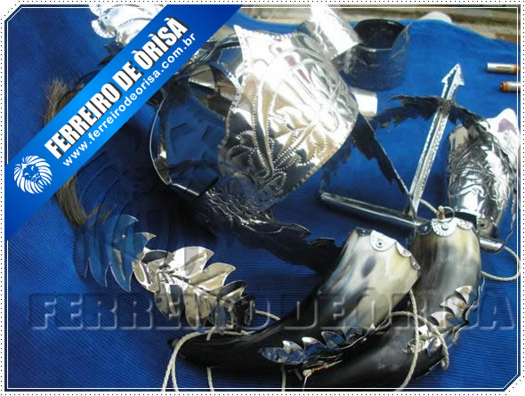 PARAMENTOS DE OXÓSSE EM FIOS NIQUELADOS FILIGRANADOSA